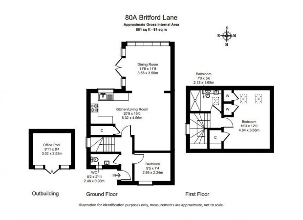 Reception Room/Study - 2.90m x 2.29m (9'6" x 7'6") Kitchen/Living Room - 6.32m x 4.37m (20'9" x 14'4") Dining Area - 3.78m x 3.20m (12'5" x 10'6" ) - Vaulted ceiling Bedroom - 3.63m x 3.23m (11'11" x 10'7")