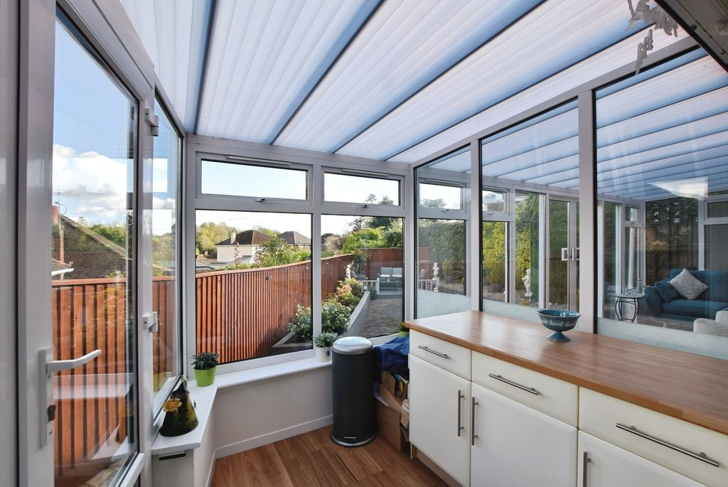 The sitting room is a comfortable and elegant space, centred around a feature fireplace and opening via patio doors into the conservatory. This additional reception space provides a versatile garden room, ideally suited to year-round enjoyment, with views across the rear garden.