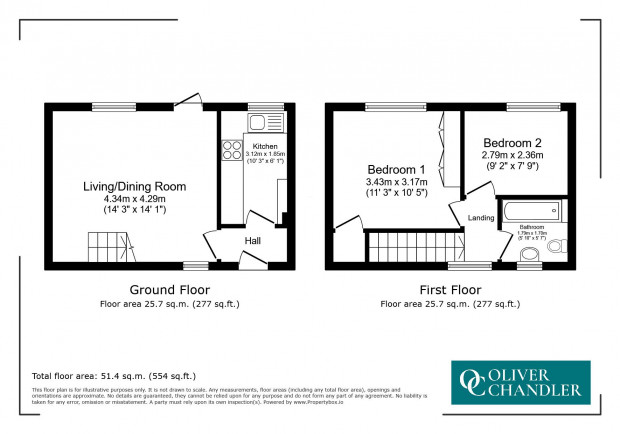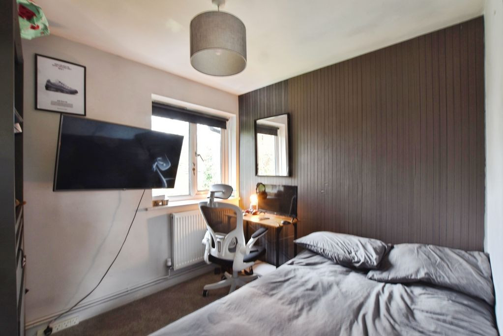 The first-floor landing provides access to two bedrooms and the family bathroom. The principal bedroom is a comfortable double room, while the second bedroom is a well-proportioned single room, suitable for use as a guest bedroom or home office. The bathroom is fitted with a panelled bath with shower over, wash hand basin and low-level WC.