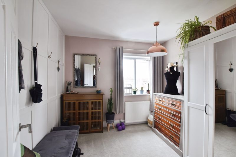 The main entrance on the ground floor opens into a welcoming hallway with beautifully panelled walls. To the front is a versatile, well-proportioned room that can serve as either a bedroom or additional reception space, complete with a front-facing window and original fireplace. To the rear is another spacious bedroom, overlooking the garden, with an adjacent, contemporary shower room featuring a WC, hand basin, shower cubicle, and rear window. The first floor offers two further bedrooms and a second stylish shower room. The principal bedroom enjoys elevated views towards the cathedral spire and is generously sized. The fourth bedroom, currently used as a dressing room, is equally well presented. Both are served by a modern shower room with high-quality fittings and finishes.