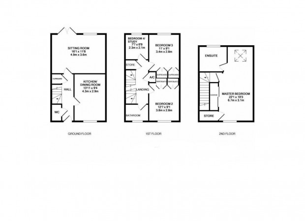 Occupying the entire top floor is the impressive principal bedroom, a bright, spacious room enhanced by dual-aspect windows. This floor also benefits from eaves storage, a double fitted wardrobe and an en-suite shower room featuring a walk-in glass enclosure, WC, wash hand basin and a window overlooking the garden.