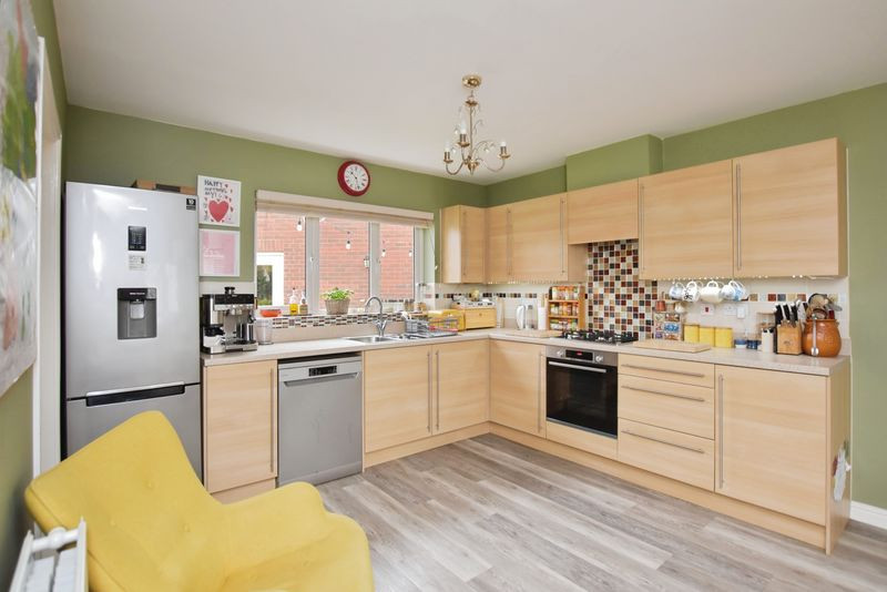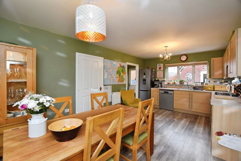 The property is entered via a welcoming hallway, providing a sense of space and light from the outset, with stairs rising to a galleried first-floor landing. The ground floor is thoughtfully arranged, offering excellent flow for both everyday living and entertaining. The spacious kitchen/dining room is a particular highlight, enjoying a dual aspect and providing ample room for family meals, homework time and informal gatherings. A separate utility room adds valuable practicality, keeping day-to-day chores discreetly tucked away.