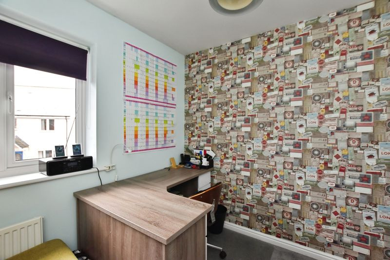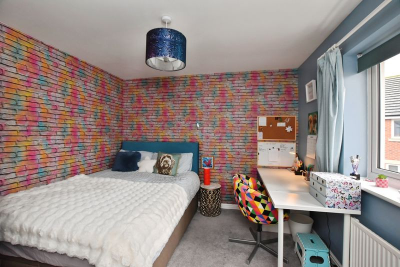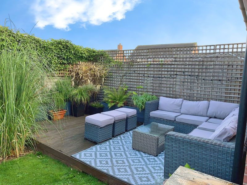 Outside, the property continues to cater well for family needs. The driveway provides off-road parking for two vehicles side by side and leads to a single garage, ideal for storage, bikes or pushchairs, with the added benefit of internal access to the garden. The rear garden is a standout feature, offering a safe and private environment. Predominantly laid to lawn and enclosed by timber fencing, it is bordered by established shrubs and flower beds, while a decked seating area provides a perfect spot for family barbecues and summer entertaining.