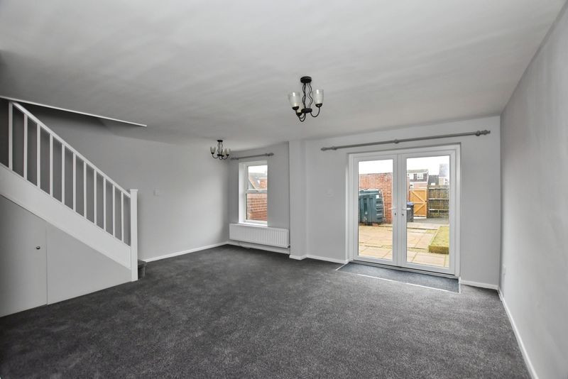 To the rear of the property, the generous sitting room enjoys an abundance of natural light, with a rear-facing window and French doors opening directly onto the garden. This space offers a comfortable and versatile living area, with useful under-stairs storage and a strong connection between the interior and the outdoor space.