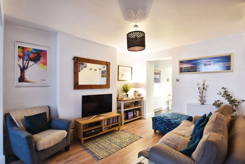 The property welcomes you with a quarry-tiled pathway leading to the front door, set behind a low-level cast-iron gate. The enclosed front garden is paved for convenience, with shared side access to the rear.
