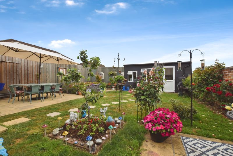 Outside, the rear garden is a real highlight of the home. Enclosed by fencing and a brick wall for privacy, the space has been thoughtfully landscaped to offer a mix of patio, lawn, and established planting. Raised beds and flower borders provide year-round interest, while the patio is perfect for alfresco dining. To the rear of the garden is a fully insulated garden cabin, ideal as a craft studio, home office or workshop. A second sheltered seating area offers further potential for outdoor dining, entertaining or even housing a hot tub.