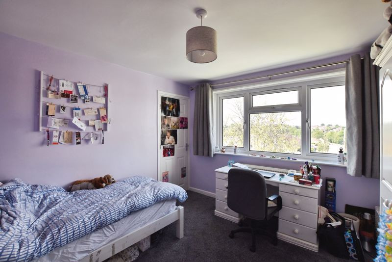 Upstairs, the first-floor landing gives access to three bedrooms, the family bathroom, the loft, and an airing cupboard containing a pressurised water cylinder. The principal bedroom is a generous double, overlooking the rear garden through a large window. Bedroom two is also a well-proportioned double, with a window to the front aspect. Bedroom three, currently used as a home office, is a good-size single room, ideal for a study, nursery, or child's bedroom.