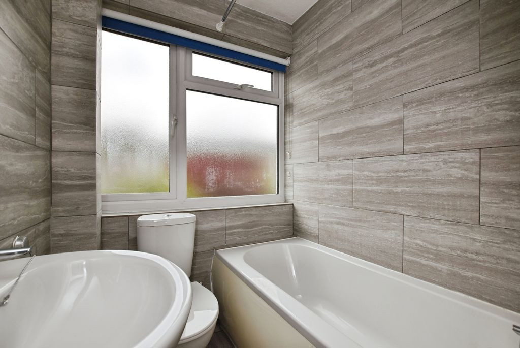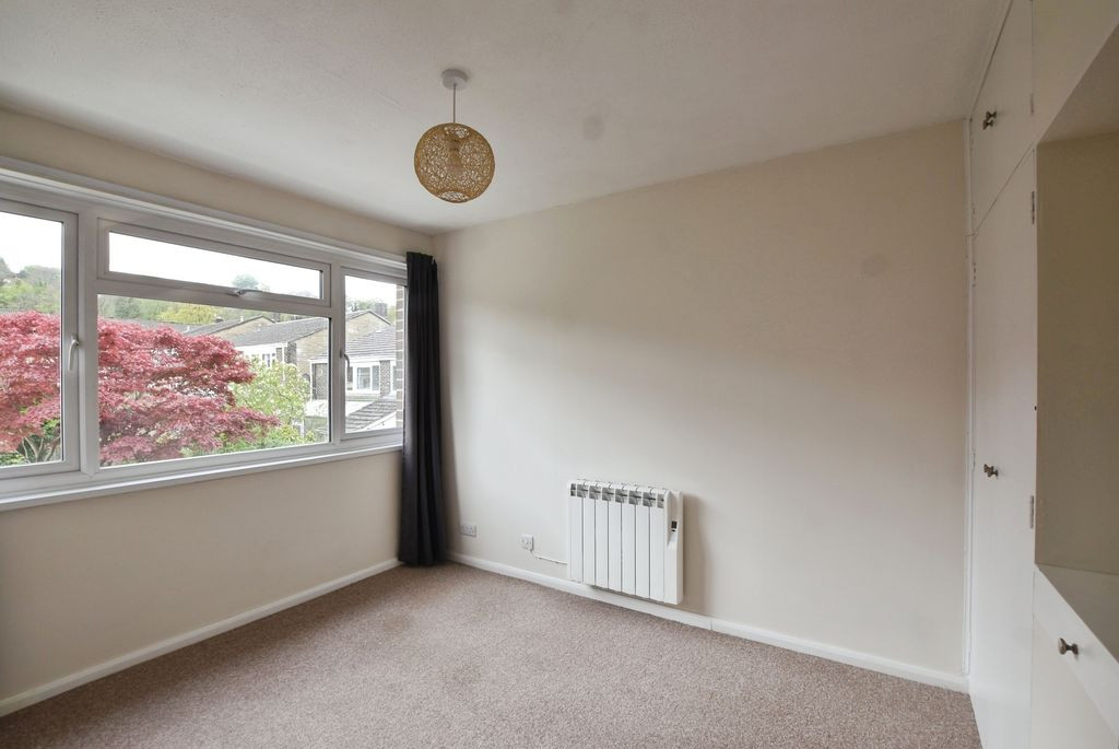 To the first floor, the landing provides access to two well-proportioned double bedrooms and the family bathroom. The principal bedroom, positioned to the front, is a generous double with fitted wardrobes and enjoys an elevated outlook towards the city. The second bedroom, overlooking the rear garden, is also a comfortable double and benefits from built-in storage. The bathroom is fitted with a panelled bath with electric shower over, WC and wash hand basin, complemented by tiled walls and flooring.