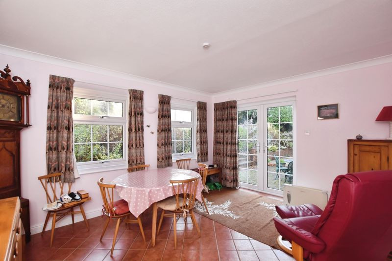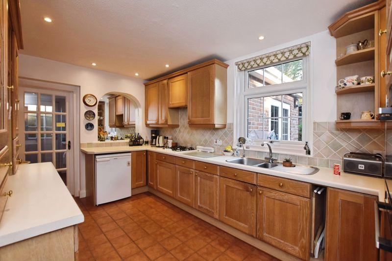 Offered with no onward chain, the property provides flexible, well-balanced accommodation, a double garage, extensive off-road parking, and beautifully landscaped gardens. The ground floor comprises a welcoming entrance hall, a dual aspect sitting room with central fireplace, and a formal dining room. The kitchen is fitted with a comprehensive range of base and wall units, complete with integrated appliances including a double oven, gas hob, and extractor. To the rear, a generous garden/family room provides additional living space with views across the gardens, complemented by a dedicated utility room and cloakroom.