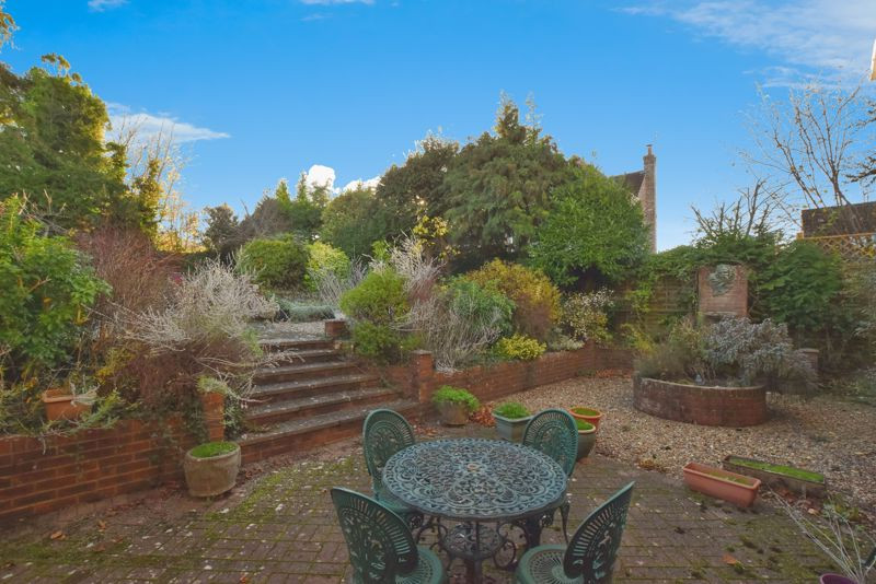 The rear garden is a particular highlight, providing seclusion and tranquillity. Thoughtfully landscaped across several tiers, it features a paved terrace for outdoor dining, raised beds, mature trees, feature water elements, and beautifully planted borders, perfect for entertaining, family life, or quiet relaxation.