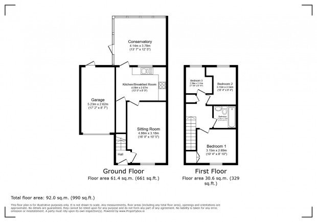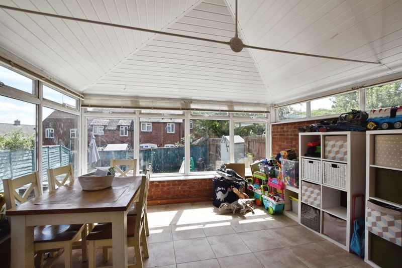 The ground floor comprises an entrance hall leading into a bright sitting room and a good-sized kitchen/breakfast room. The kitchen is fitted with a range of under-counter and matching eye-level units, and includes an integrated dishwasher, gas hob, electric oven, and a one-and-a-half bowl sink with drainer. There is also space and plumbing for a washing machine, along with ample room for an American-style fridge freezer. To the rear of the home, a spacious conservatory measuring over 12 by 13 feet provides a versatile living space and opens onto the south-easterly facing rear garden.