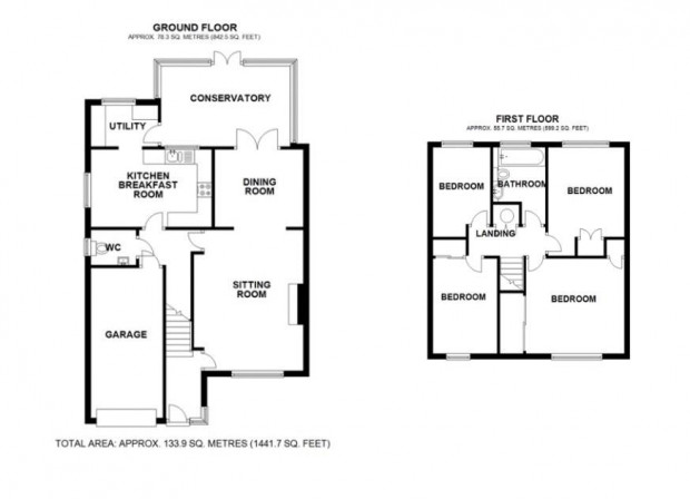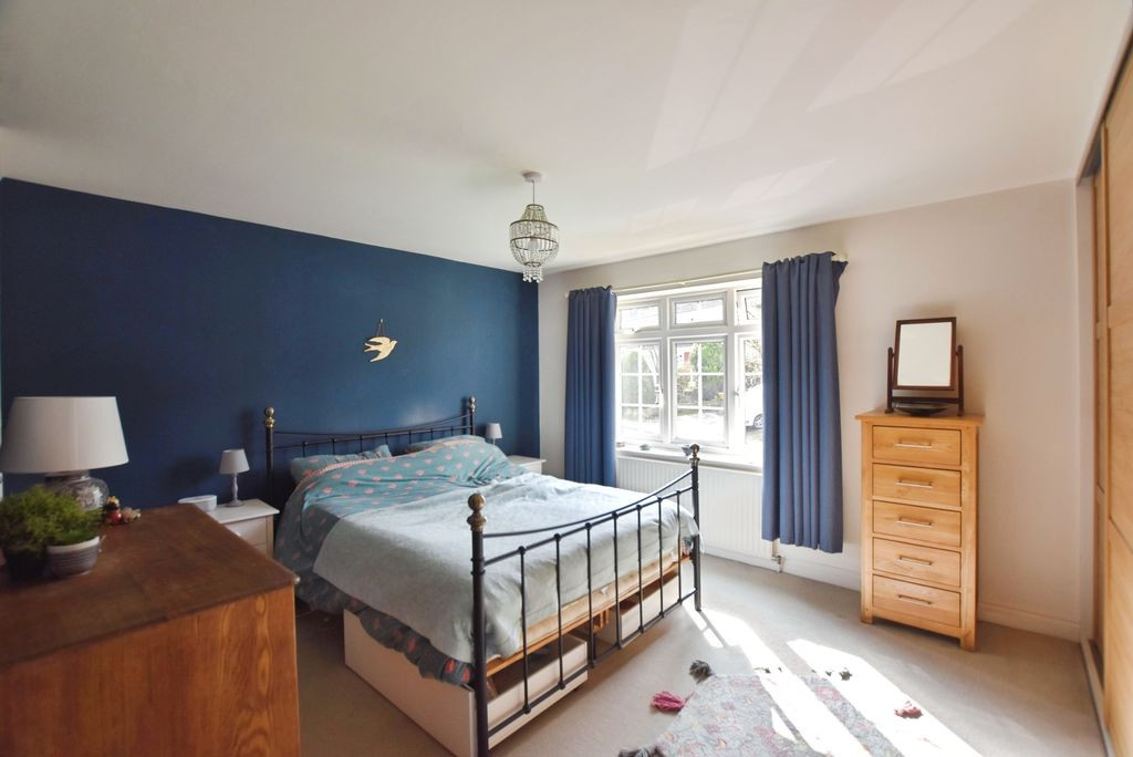 On the first floor, the landing gives access to four well-proportioned bedrooms together with the family bathroom. The principal bedroom benefits from fitted wardrobes and useful additional storage. The remaining bedrooms are all served by a well-appointed bathroom fitted with a panelled bath with shower and screen, wash hand basin, WC and fitted storage, complemented by tiled walls and a heated towel rail.