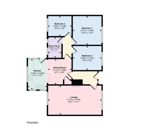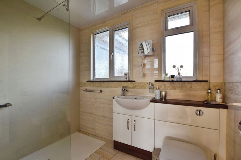 An inner hallway leads to the bedroom accommodation. Bedrooms one and two are well-proportioned double rooms, while the third bedroom is a comfortable single, all presented in a light and neutral decorative scheme. The accommodation is served by a modern Wave shower room, fitted with a walk-in shower, wash hand basin with vanity storage and WC.