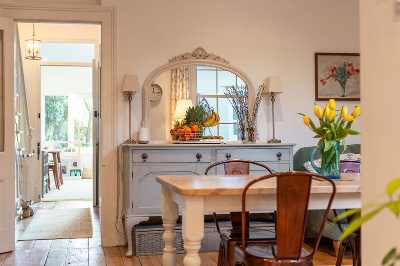 Built in 1860, the house retains a wealth of period features including ornate cornicing, deep skirtings, intricately detailed ceiling roses, panelled doors, stained and etched glass, and cast-iron fireplaces. These historical elements are complemented by sympathetic modern improvements, including newly installed timber sash windows, an open-plan kitchen/dining area, and an upgraded garden room roof, enabling year-round use and a seamless integration of period charm and contemporary living. Generous room proportions and an abundance of natural light create a calm, cohesive interior environment throughout.