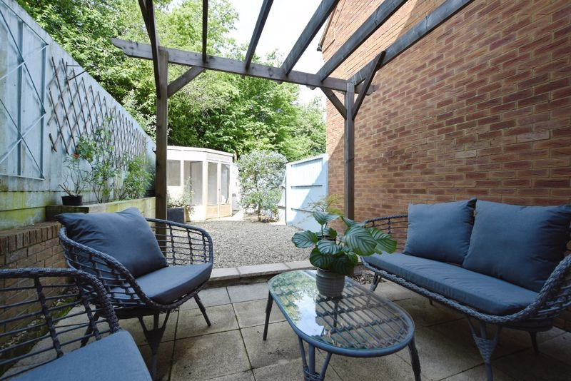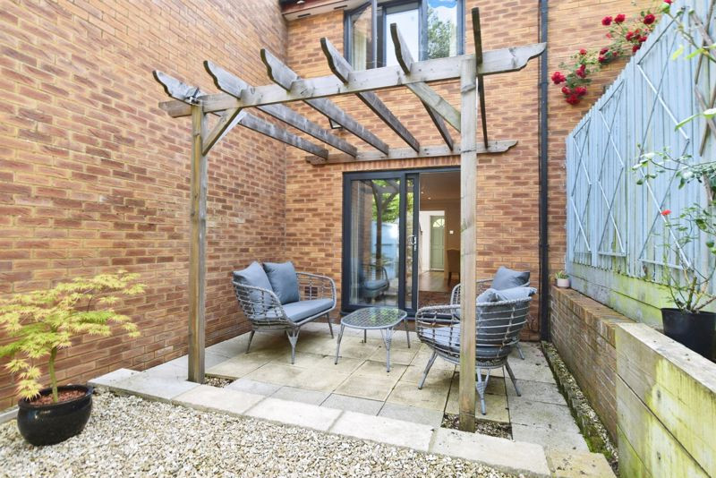 Outside, the rear garden is a peaceful, low-maintenance outdoor retreat, beginning with a stone patio area beneath a timber pergola, perfect for al fresco dining or morning coffee. Beyond, the shingled garden is fully enclosed for privacy and safety and features a timber summerhouse, currently used as a home gym, with potential for use as an office, studio, or additional entertaining space.