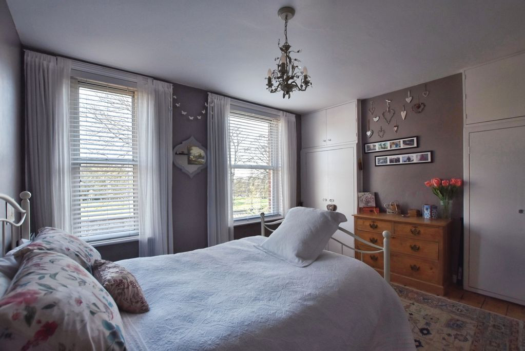 The first floor provides two well-proportioned bedrooms and a family bathroom. The principal bedroom occupies the front of the property and enjoys an elevated outlook across Wyndham Park through two large windows, together with fitted storage.