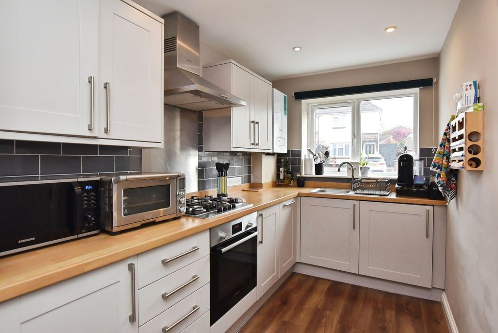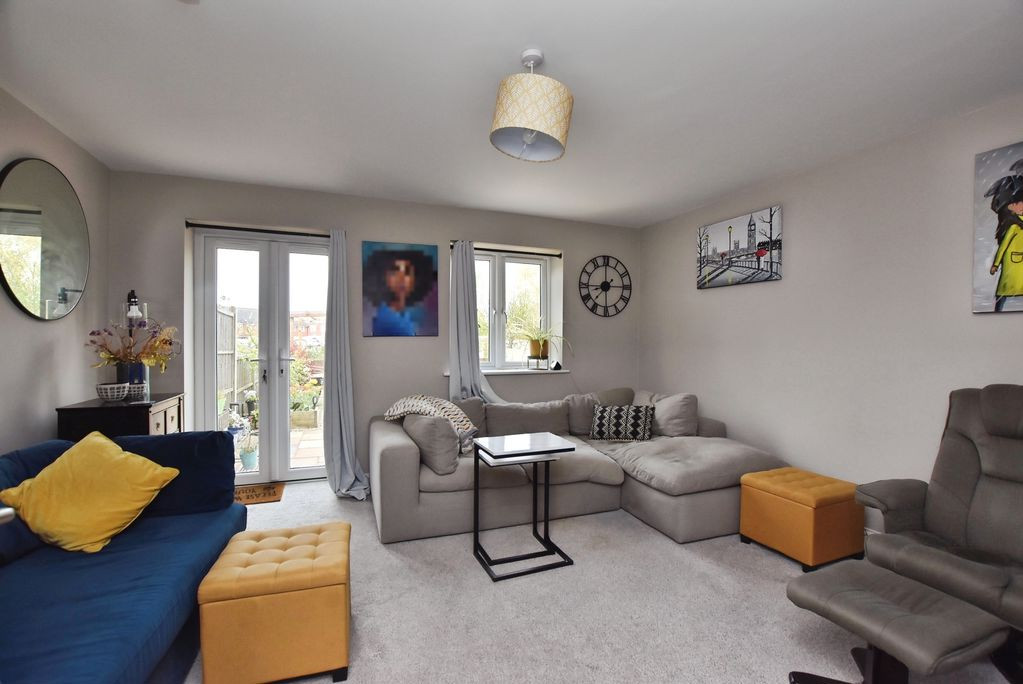 The kitchen/dining room is well-appointed with a range of modern base and wall units, complemented by ample worktop space. Integrated appliances include a gas hob with extractor over, oven, fridge/freezer, washing machine and slimline dishwasher. There is ample room for a dining table, making this a practical and sociable space. Positioned at the rear of the property, the sitting room is a particularly attractive feature, with French doors opening onto the garden and framing delightful views across the River Avon and towards the nearby nature reserve, creating a calm and picturesque setting.