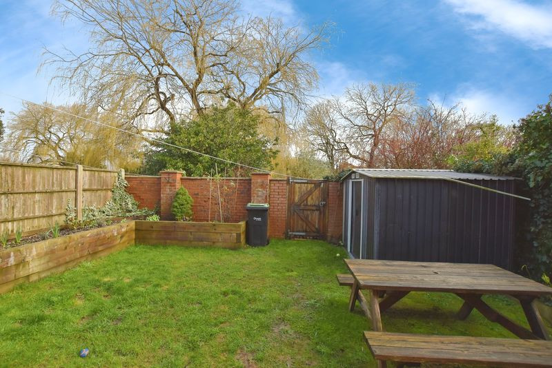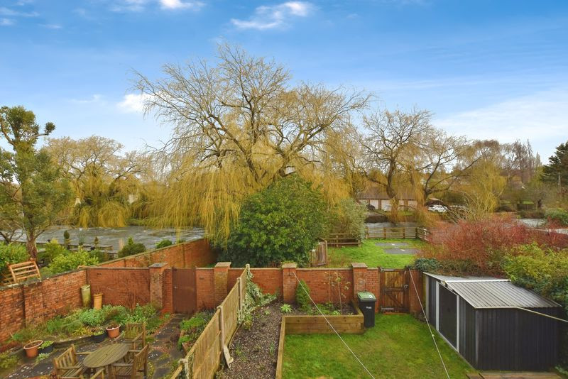 The rear garden provides a private and peaceful retreat, enclosed by a combination of brick walling and timber fencing. It is predominantly laid to lawn with raised beds and includes a gate offering direct access to the riverbank, enhancing the property’s appeal and setting.