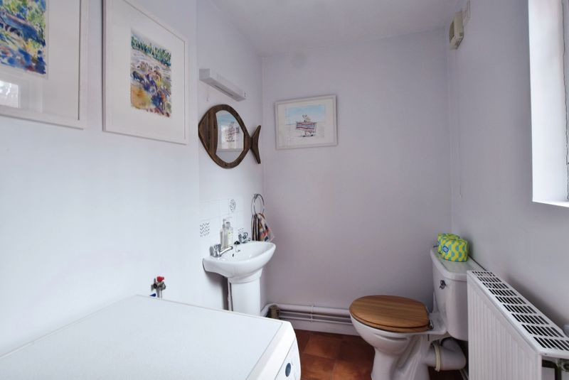 Continuation of the tile-effect flooring with window to the side. Offers a WC and a wash hand basin, and has room for a washing machine and tumble dryer.
