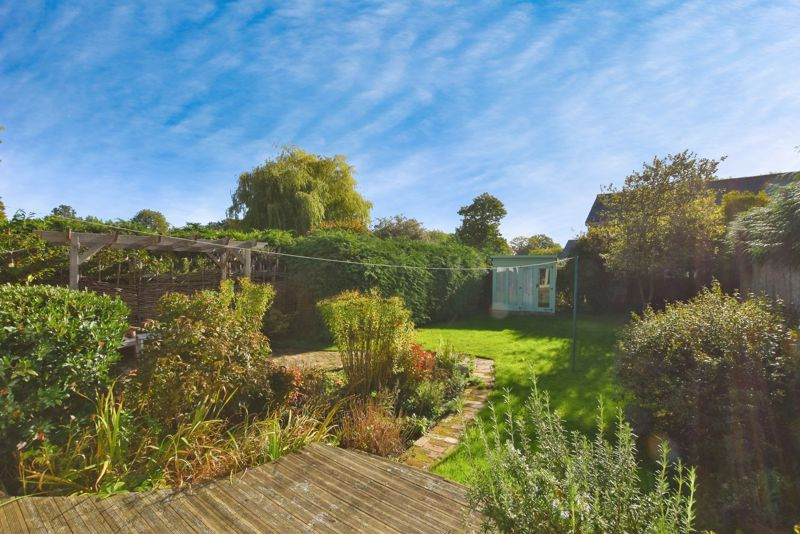 Outside, the property is approached via a pathway bordered by established shrubs, leading to the front entrance. A side gate provides access to a pea-shingle garden area and the principal garden to the rear. The gardens are a particular feature of the property, offering a high degree of privacy and seclusion. Enclosed by mature hedgerows, the space is predominantly laid to lawn with an attractive decked terrace, ideal for outdoor dining and entertaining. A sweet summerhouse is located at the rear of the garden and has both power and lighting. A pathway leads through to the detached single garage, which also has power and lighting and another parking space in front.