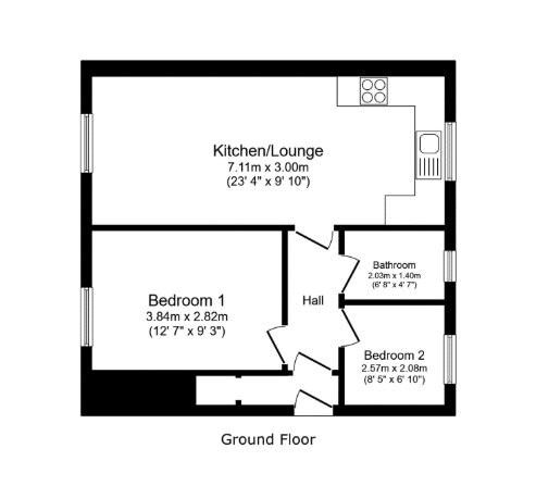 The principal bedroom is a generous double room with a double-glazed window to the front aspect and plenty of space for freestanding furniture. The second bedroom, located to the rear, offers flexibility for use as a guest room, home office, or nursery. The bathroom is fitted with a modern white suite comprising a P shaped panelled bath with thermostatic shower over and glass screen, wash hand basin with chrome mixer tap, and low-level WC. The room benefits from tiled walls, an obscured glass double-glazed window to the rear aspect.