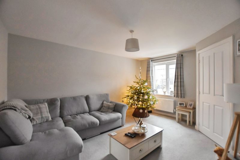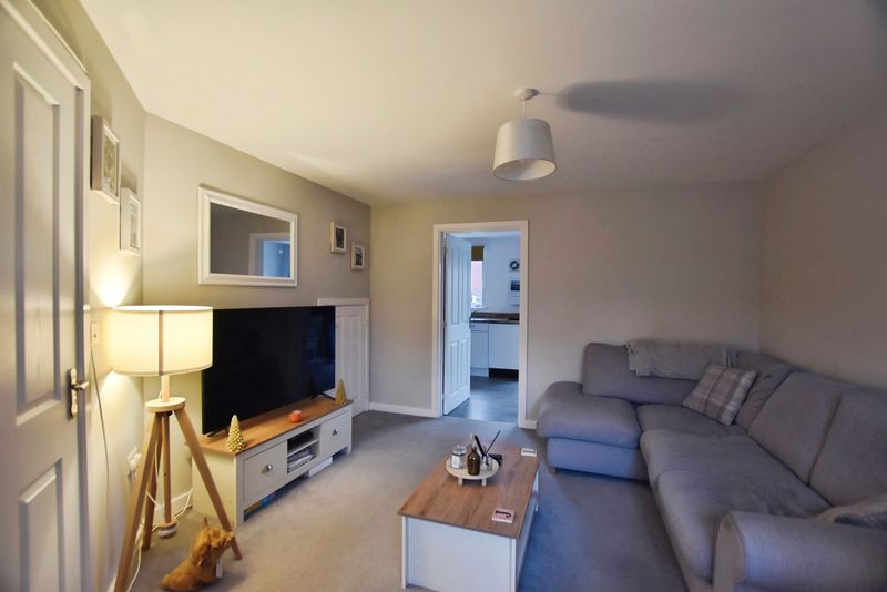 The house is approached via a composite front door opening into a bright and welcoming entrance hall. To the left is a neatly appointed cloakroom, and to the right lies the sitting room, a beautifully presented and generously proportioned space featuring a front-facing window and an understairs storage cupboard. This room enjoys a natural flow through to the open-plan kitchen/dining room at the rear of the property.