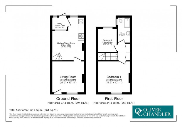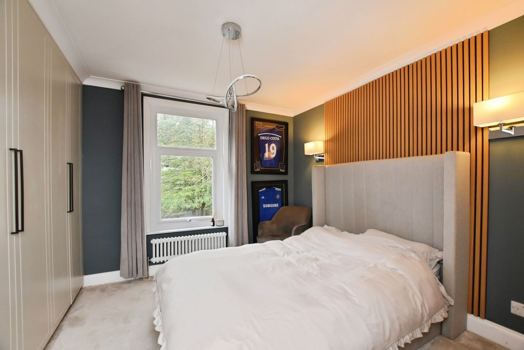 The first floor comprises two well-proportioned bedrooms and a stylish shower room. The principal bedroom is a generous and comfortable space overlooking the rear of the property, featuring a sash window and built-in storage. The second bedroom sits to the front aspect and also benefits from fitted storage. The contemporary shower room has been newly fitted and includes a walk-in double shower with glass screen, cozy underfloor heating, wash hand basin with storage beneath, concealed WC, and a side-aspect window providing natural light and ventilation.