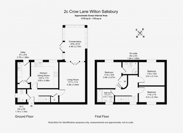 From Salisbury take the A36 Wilton Road, turning left at the roundabout into Minster Street. Take the second right into Russell Street. At the crossroads proceed straight over into Crow Lane where the gravelled driveway to number 2c will be seen on the left hand side.