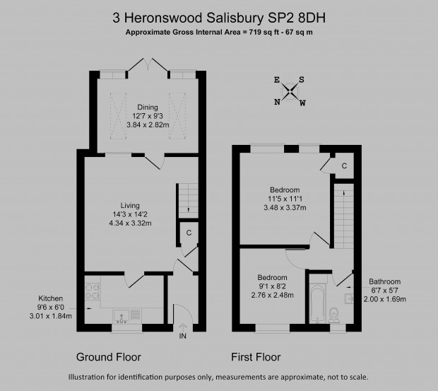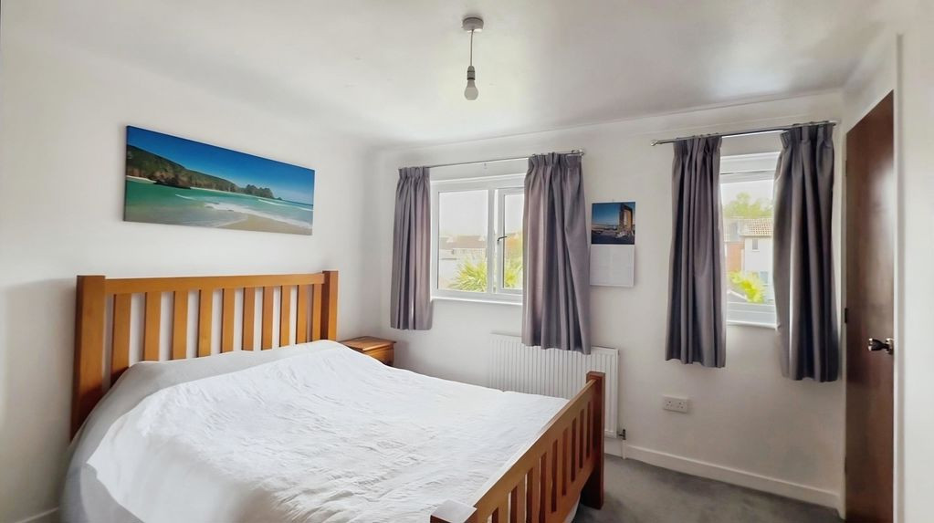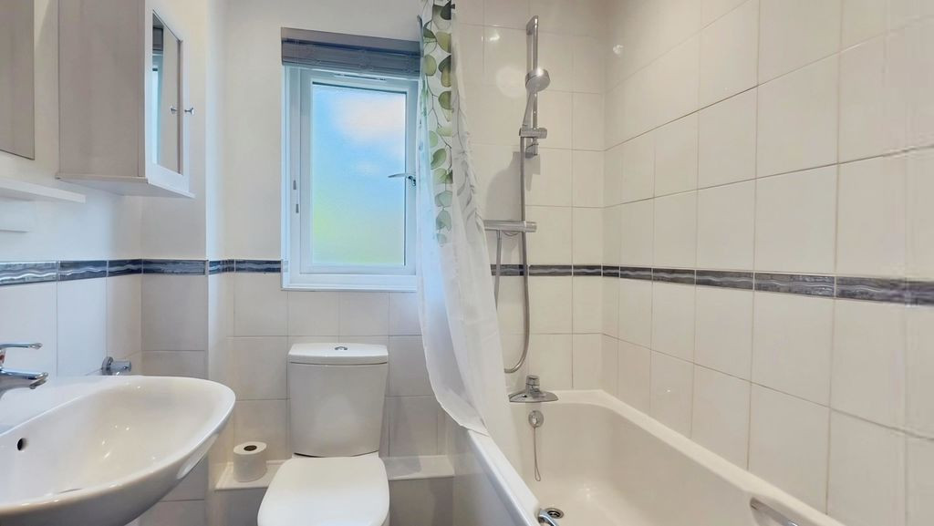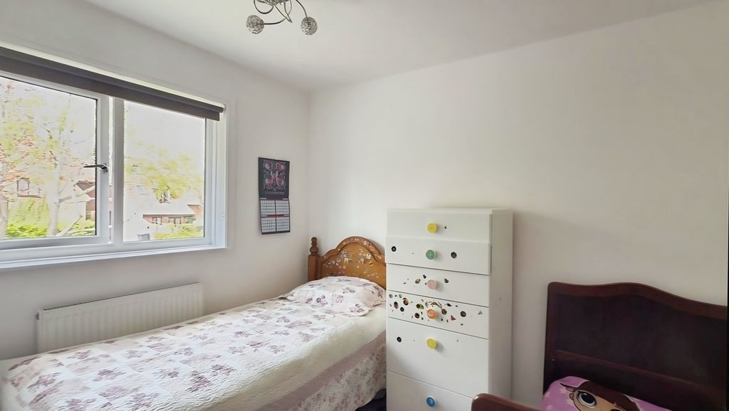 To the first floor, there are two well-proportioned bedrooms and a family bathroom. The principal bedroom is a generous double, enjoying a pleasant rear aspect via two windows and benefitting from a built-in storage cupboard. The second bedroom, positioned to the front, offers flexibility as a guest room, home office or nursery. The family bathroom is fitted with a panelled bath with shower over, WC and wash hand basin, presented in a clean and functional style.