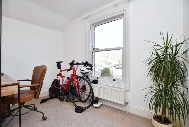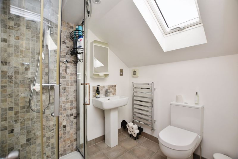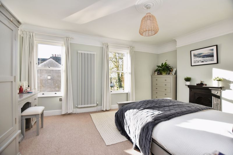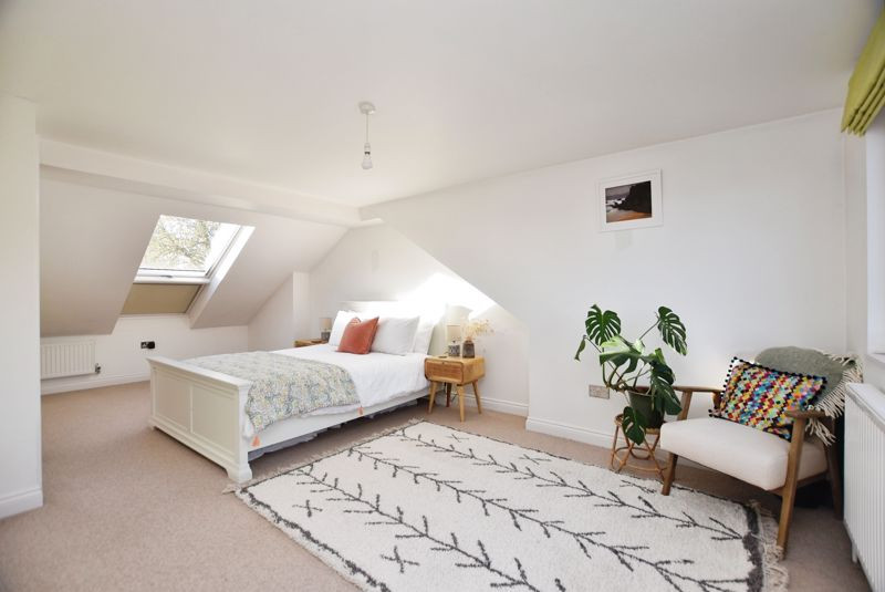 The first floor comprises three well-proportioned bedrooms, all presented with elegance and attention to detail. The principal bedroom on this level is of generous scale and features twin sash windows to the front, while the family bathroom is fitted with a contemporary white suite including a rainfall shower above the bath, vanity unit and heated towel rail. The second floor has been skilfully converted to provide a stunning principal suite, with far-reaching westerly views across Salisbury towards open countryside. This room includes built-in wardrobes, generous eaves storage and a stylish en suite shower room with a modern finish.