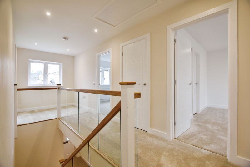 Upstairs, four generously proportioned bedrooms offer superb accommodation. The principal suite is an indulgent sanctuary, complete with a private dressing area and a sleek en-suite shower room. A second en-suite bedroom adds further luxury, while the remaining bedrooms are serviced by a stylish family bathroom featuring a full-size bath with an overhead shower. All bathrooms and cloakrooms are finished to an impeccable standard, with contemporary white sanitary ware, chrome fittings, heated towel rails, and