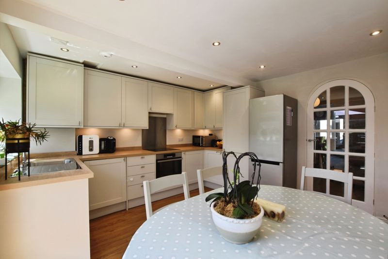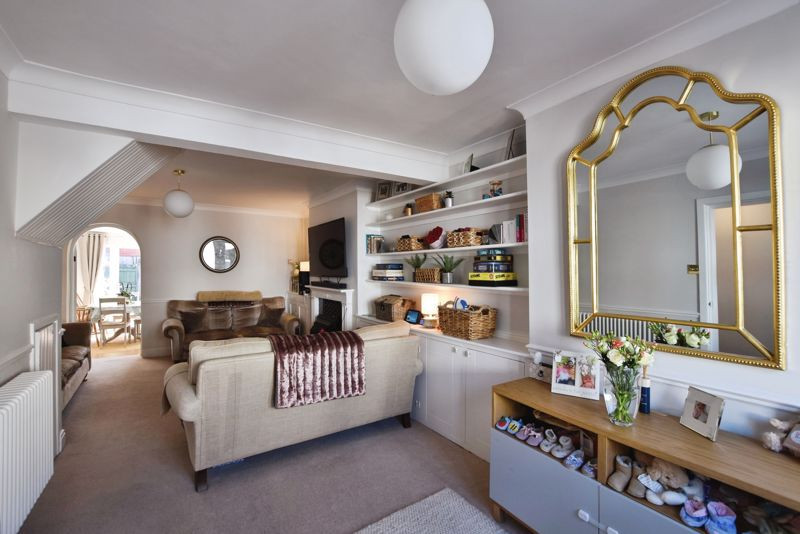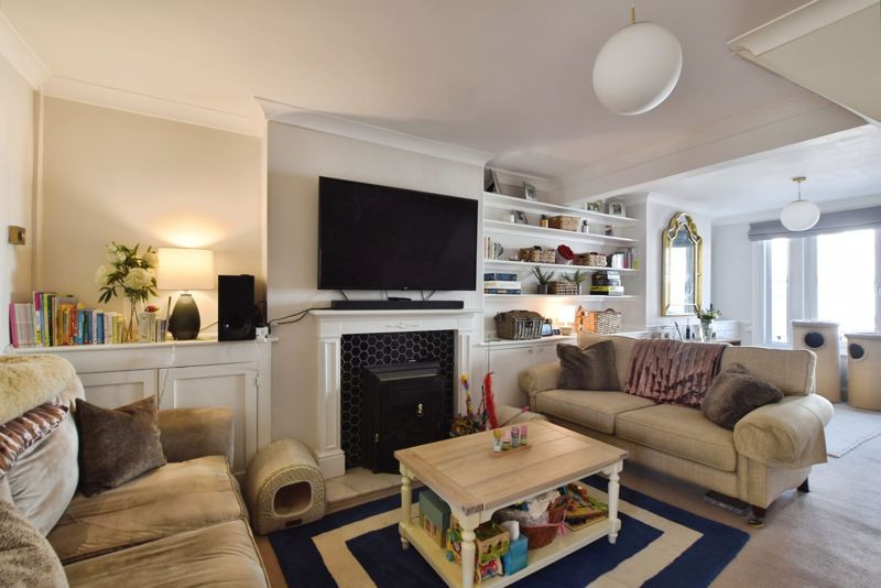 This well-presented home blends original character with tasteful modern updates. Notable features include high ceilings, modern wood effect floors, a feature fireplace, dado rails, and feature radiators, creating a charming and comfortable interior. The ground floor opens into an entrance hall which leads through to a superbly proportioned living and dining room stretching over 24 feet in length. This space retains its period charm with built-in alcove cupboards and shelving, along with a striking central fireplace. A door leads to the kitchen/dining room at the rear of the property. Thoughtfully designed, the kitchen offers a range of shaker-style base and wall units, with integrated appliances, complementary worktops, neutral splashback, and space for a full-height fridge/freezer. There is ample space for a dining table and chairs, and French doors provide a seamless connection to the courtyard garden.