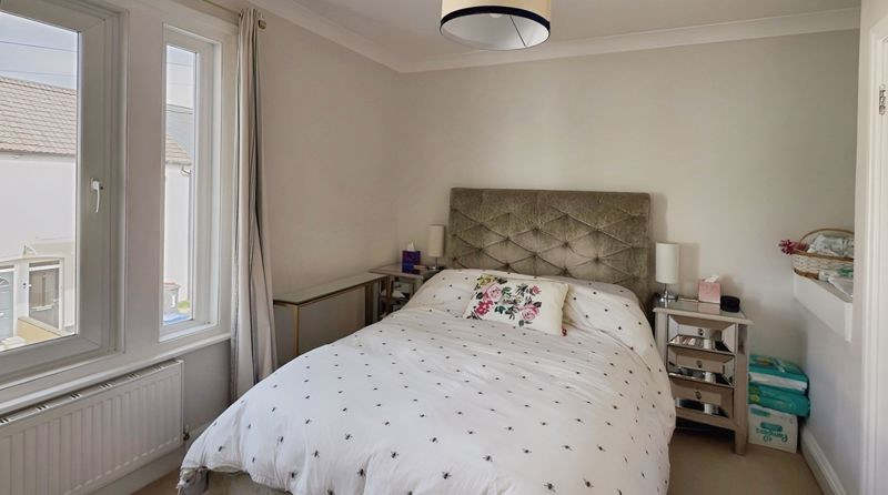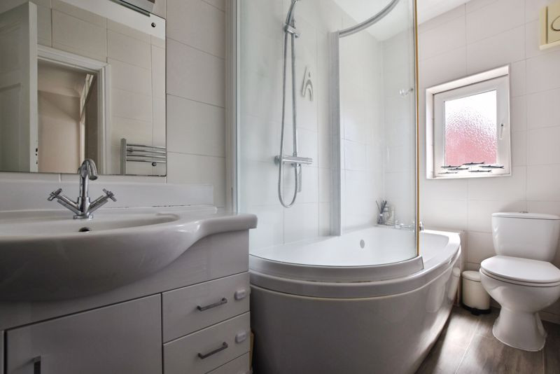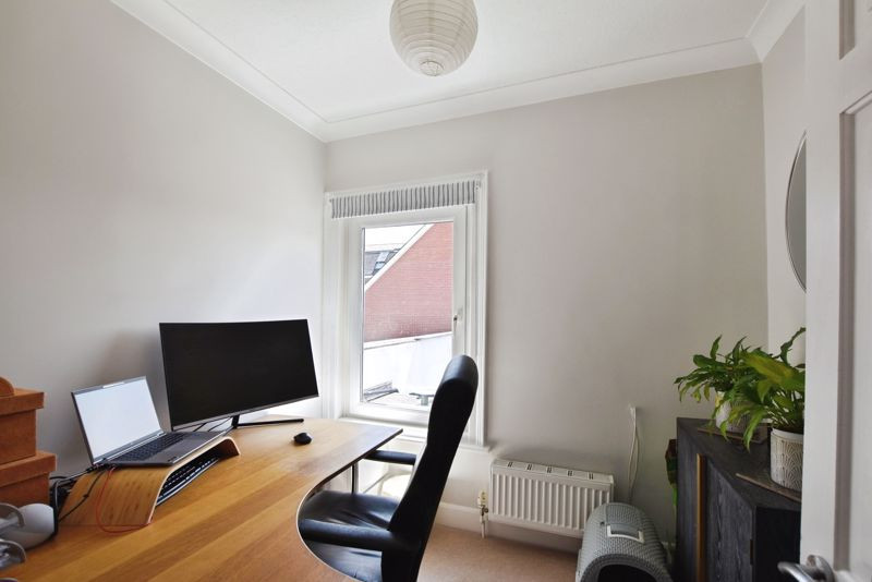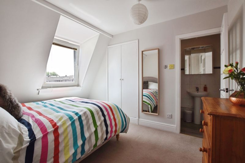 Upstairs on the first floor, the landing is unusually generous and offers built-in shelving and a useful storage cupboard. There are two bedrooms on this level and a spacious double room to the front of the house, and a small single bedroom/office overlooking the garden. The family bathroom is also on this floor, fitted with a modern three-piece suite including a bath with shower over and screen, WC, and hand basin, complemented by stylish tiling and a heated towel rail. A further staircase leads to the second floor, where two additional double bedrooms are located. The rear bedroom enjoys the benefit of an en-suite shower room, making this an ideal principal suite or a comfortable guest bedroom. This attractive and adaptable home also benefits from double glazing and gas central heating throughout.