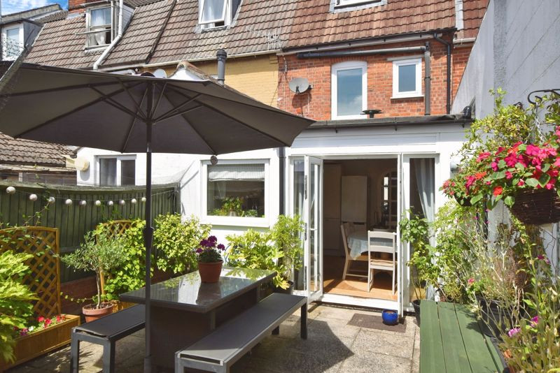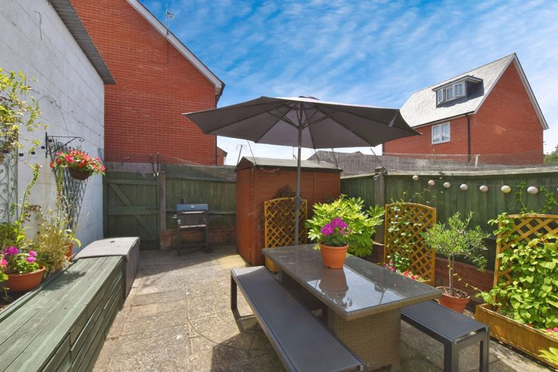 Outside, the south-facing rear garden is fully paved for low-maintenance living and offers a private suntrap of a garden, ideal for outdoor dining and potted plants. A rear gate offers convenient access to a shared pathway. On-street permit parking is available to the front of the property.
