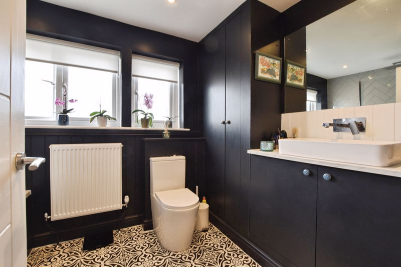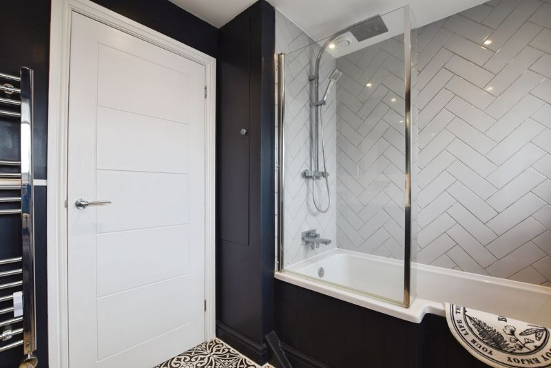 On the first floor, the property continues to impress with three exceptionally spacious double bedrooms. Two of these enjoy the most wonderful outlook over the river, with open green space beyond, offering a rare sense of peace and privacy. The family bathroom has been meticulously designed with a neutral suite and finished with quality detailing. It comprises a P-shaped bath with a separate wall-mounted shower, wash basin with vanity storage, WC, and a heated towel rail, all complemented by elegant tiling.