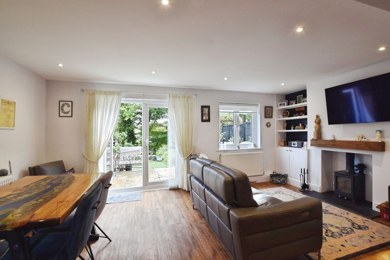The adjoining sitting area is filled with natural light and enjoys a peaceful outlook through double doors and a large window that frames the landscaped garden and the river beyond. This seamless connection between indoor and outdoor living creates a space that works as beautifully for entertaining as it does for quiet evenings at home. There is an attractive fireplace, with woodburning stove, with solid oak mantel beam. The ground floor also benefits from excellent storage, including a generous understairs cupboard, as well as a bespoke handcrafted cloakroom with WC and wash basin.