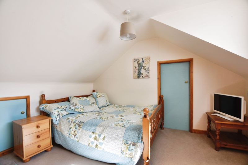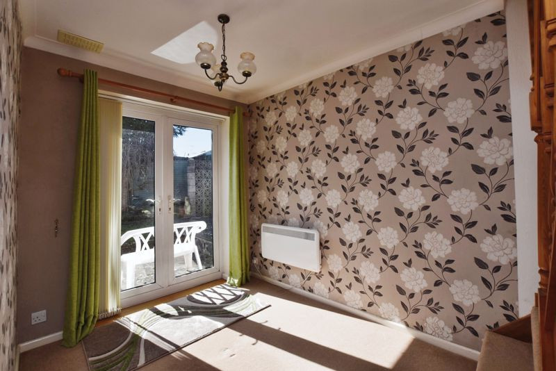 Beyond the kitchen, a flexible room with double patio doors leading to the garden offers endless possibilities it could serve as a third bedroom, dining room, or study. A staircase from this room leads to the second bedroom, a bright and airy space at the top of the house, complete with a Velux window, eaves storage, and plenty of room for furniture.