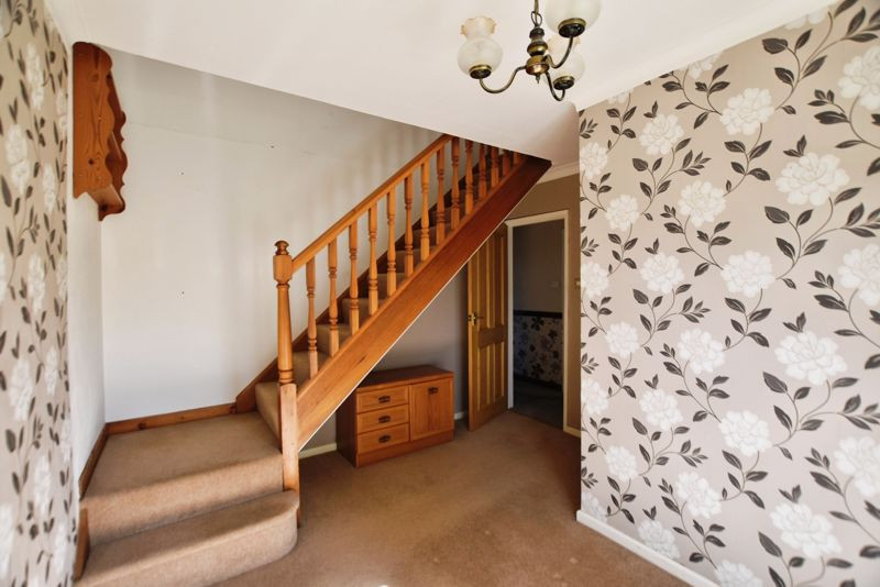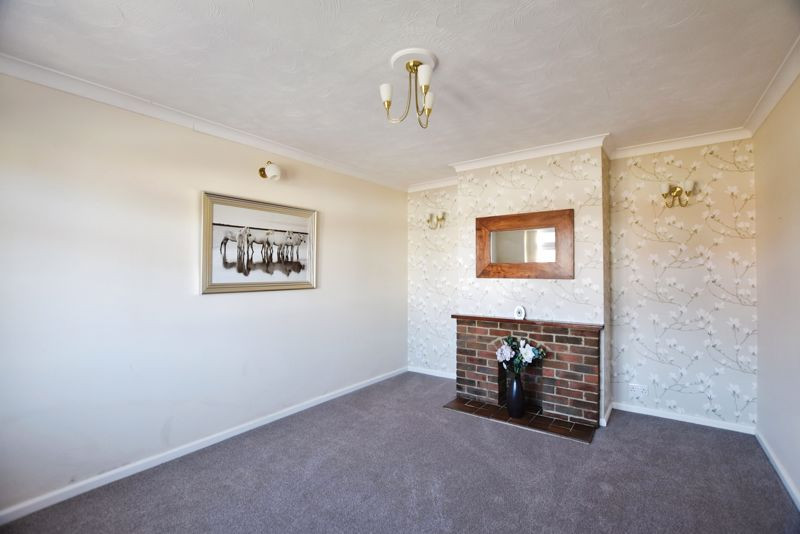 Stepping inside, the entrance hall leads to the principal living spaces. To the left, the well-proportioned sitting room benefits from a large front-facing window, allowing for plenty of natural light. A feature brick fireplace adds character and warmth to the space.
