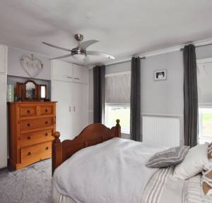 Upstairs, the main bedroom is a generous king-size room, with built-in wardrobes and a large window that brings in plenty of natural light, making it a bright and airy retreat. The second bedroom is a well-proportioned double room that overlooks the garden, offering a peaceful and private atmosphere. The third bedroom is versatile and can be used as a single room, nursery, or home office, allowing for flexible living arrangements.