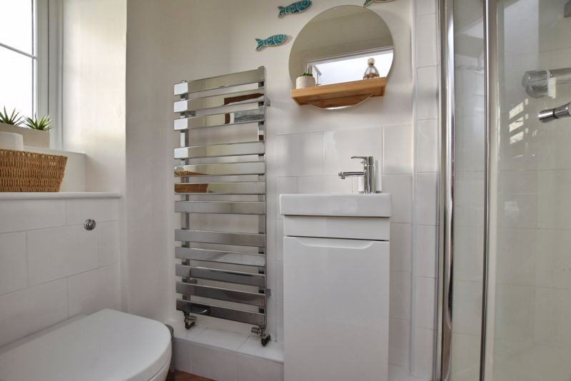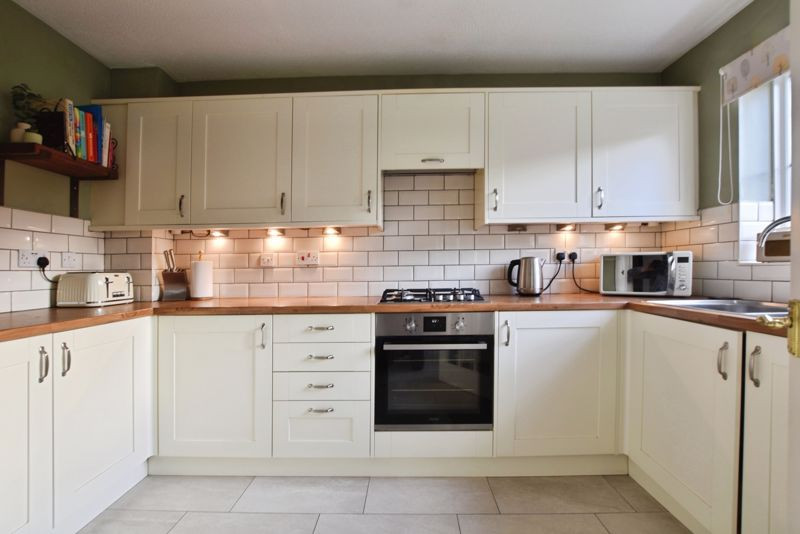 The accommodation is arranged over two floors and has been tastefully updated by the current owners. The entrance hall provides access to the principal reception spaces and includes a convenient cloakroom with WC. To the front, the kitchen has been recently refitted with a stylish range of neutral wall and base units complemented by tiled splashbacks and quality work surfaces. Integrated appliances include an oven with gas hob and extractor over, dishwasher, and washing machine, with additional space for a freestanding fridge/freezer. The house is heated by a combi gas boiler, which was replaced in 2019. To the rear, the spacious sitting/dining room is a bright and welcoming space, featuring glazed doors that open directly onto the patio and garden beyond. There is ample room for both seating and dining areas, as well as useful under-stairs storage.