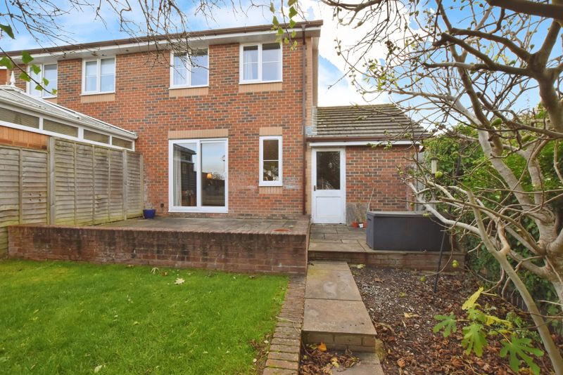 Externally, the property is equally appealing. The front garden is laid to lawn with mature hedging, while the tarmac driveway provides off-road parking for multiple vehicles and access to the single garage, which includes power, lighting, and a personal door to the garden. The rear garden offers an excellent degree of privacy, with an initial paved terrace ideal for outdoor dining, stepping down to two areas of lawn bordered by mature planting and a feature tree. A side gate provides access to the front. The property benefits from recently replaced fascias and guttering.