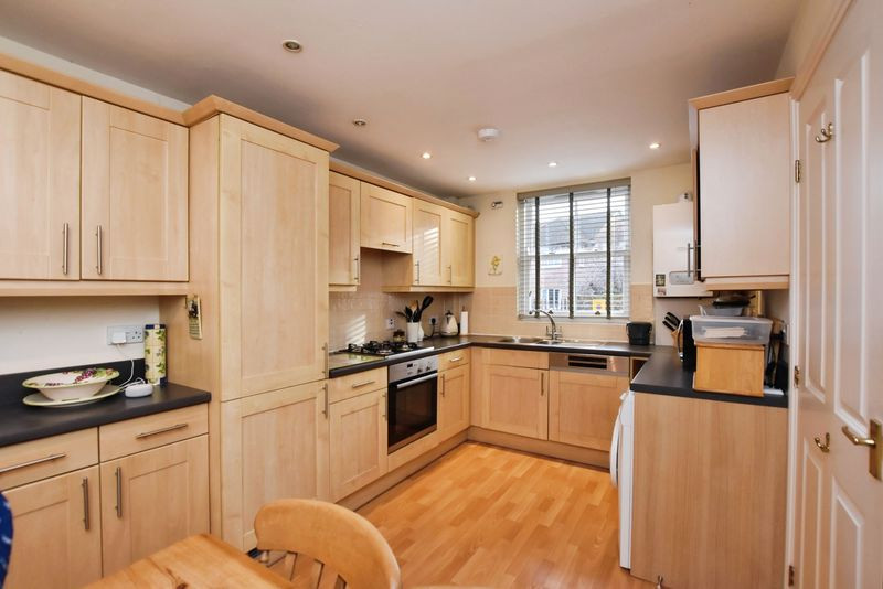 A welcoming entrance hall sets the tone and leads into the principal living spaces. To the front lies a comprehensively appointed kitchen and dining room, fitted with a generous range of contemporary wall and base units beneath attractive work surfaces and incorporating quality integrated appliances. There is ample space for an everyday dining table, creating a sociable and practical heart to the home.