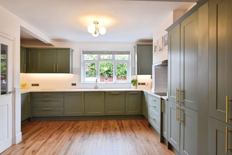 At the heart of the home lies the impressive kitchen/breakfast room, comprehensively fitted with an extensive range of contemporary wall and base units, Quartz work surfaces, and high-quality integrated appliances. A large central island provides additional workspace, storage, and a wine chiller, making this an ideal space for both daily use and entertaining. The kitchen opens through to a dining room, which in turn leads to the 20 ft. garden room, enjoying views and access to the rear garden. Additional accommodation on the ground floor includes a boot room with external access, a cloakroom/laundry room, and a spacious study or gym, providing versatility for modern family needs.
