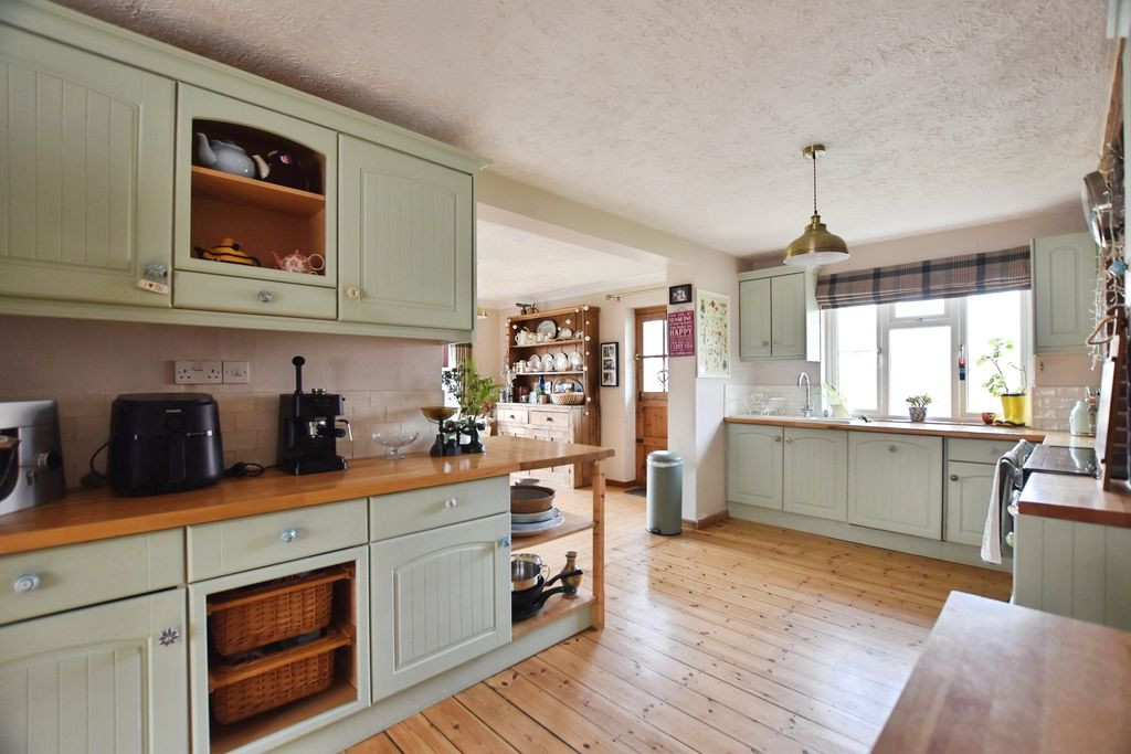 The principal reception areas are particularly noteworthy. A spacious sitting room and an adjoining kitchen/dining room both enjoy direct access to the rear garden via glazed doors, creating a seamless connection between internal and external living spaces. The kitchen is well designed and fitted with an extensive range of wall and base cabinetry, complemented by ample work surfaces and natural light.