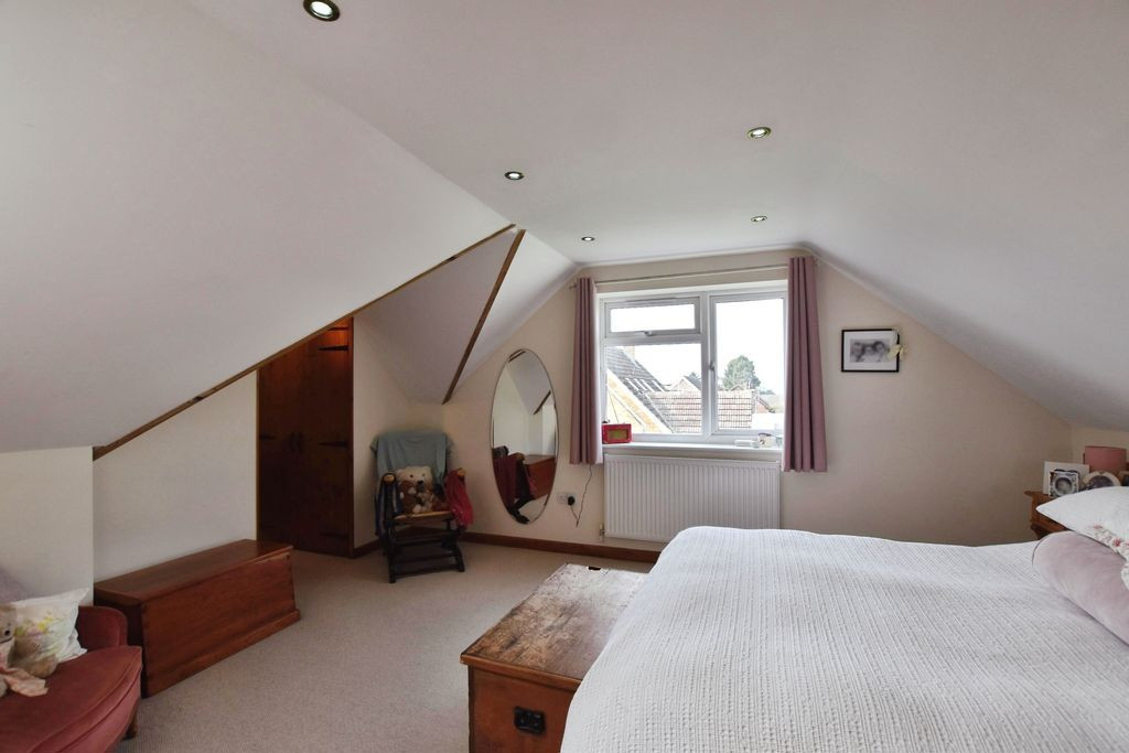 A further double bedroom to the front includes fitted storage and additional eaves access, while the remaining bedrooms offer flexibility for a variety of uses, including guest accommodation or home working. These are served by a well-appointed family bathroom. The property benefits from excellent storage throughout, including a large airing cupboard and extensive eaves storage solutions.