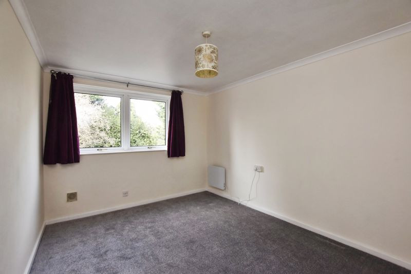 The bedroom is a generously sized double room with a built-in wardrobe, slimline electric radiator, and a double-glazed window overlooking the rear aspect.