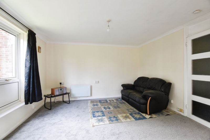 The front door opens into a welcoming entrance hallway with tiled flooring, a built-in storage cupboard, and doors leading to all rooms. The sitting room is a spacious, carpeted living area with a large, double-glazed window offering views towards the city. There is a slimline electric radiator.