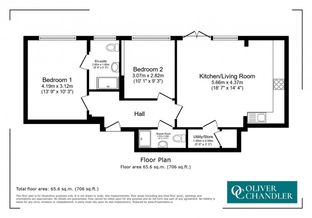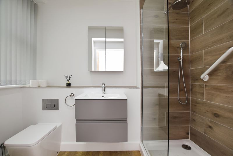 There are two well-proportioned bedrooms, the principal of which is served by a smartly appointed en-suite shower room. A sleek family bathroom, finished to an excellent specification, serves the second bedroom, and a separate utility room adds a valuable practical element to the accommodation.