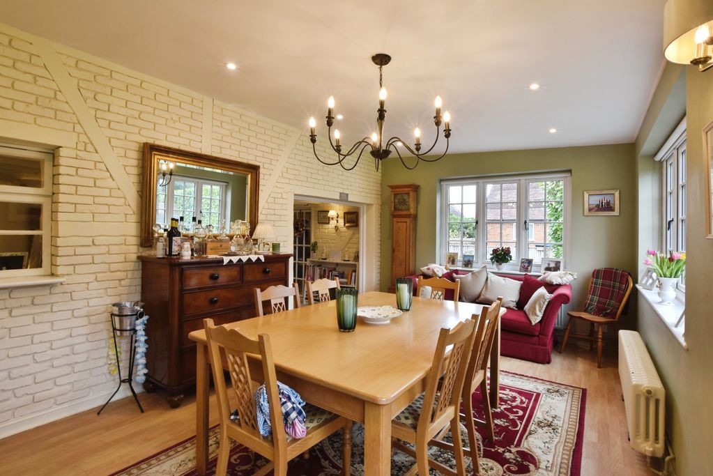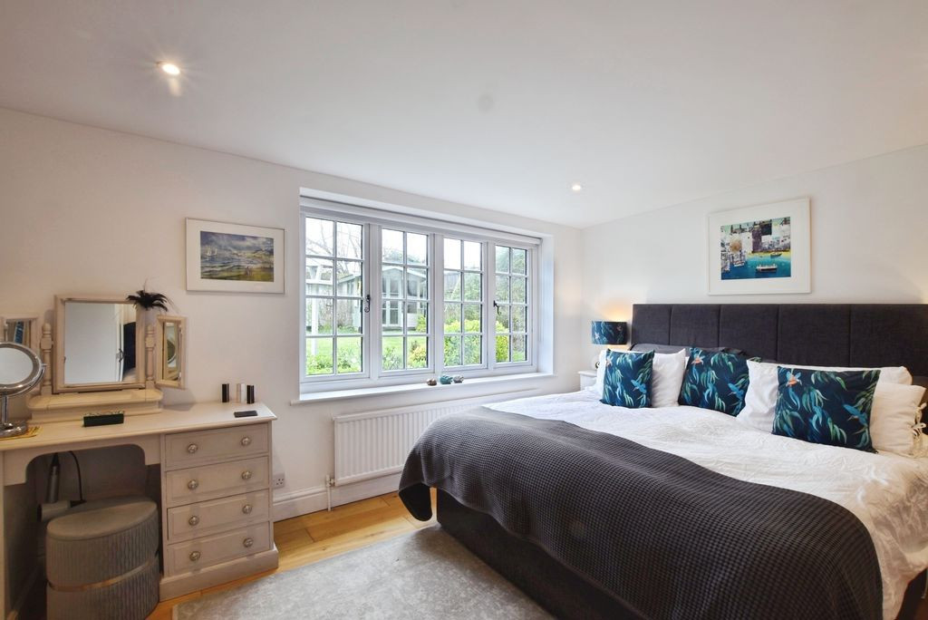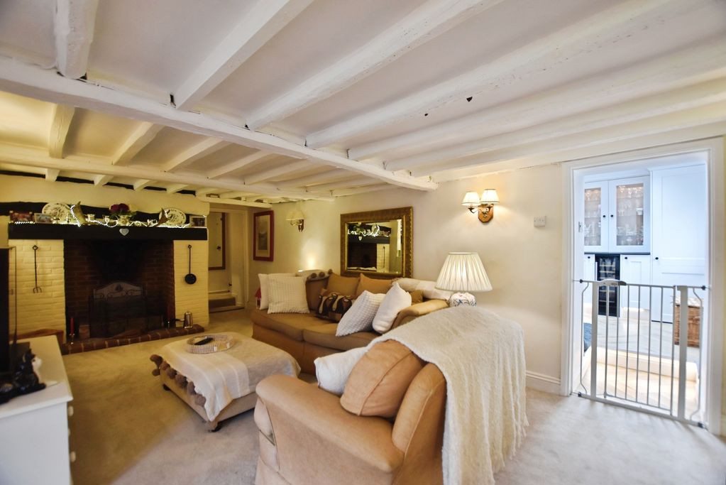 The reception space is both generous and atmospheric, with a cosy sitting room centred around the inglenook fireplace, and a beautifully appointed dining room overlooking the garden, with patio doors opening directly onto the terrace, ideal for year-round enjoyment. The ground floor also accommodates an impressive principal bedroom suite, a well-proportioned room with a peaceful rear aspect and the benefit of an en-suite bathroom.