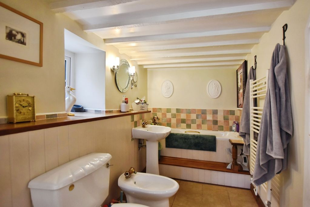 The property is entered via charming stable doors into an initial entrance space, leading through to a welcoming hall with a practical shower room/boot room. Believed to date back approximately 300 years, the original cottage has been sympathetically extended over time to create a well-balanced and highly functional home, retaining a wealth of period features including exposed beams, cottage-style windows, brickwork and a striking inglenook fireplace.